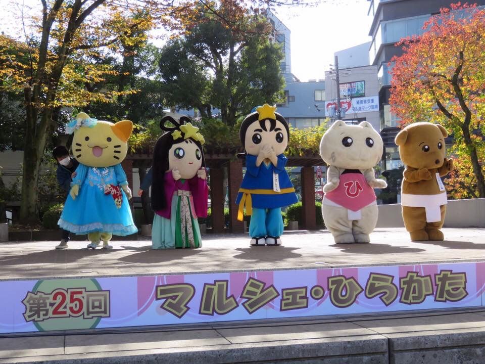 枚方のキャラ、くらわんこ、ひらにゃんこ、ひこぼしくん、交野市のおりひめちゃん