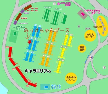 ブースはムジナもんステージの前 青3の18 赤い★の位置 ステージ 23(土) 10:30あにっちS寺嶋由芙ゆっふぃーライブ 12:30ムジナもんSそたい 13:00いがまんSまゆお姉さん 24(日) 9:30いがまんSずれ子さん 11:50いがまんSさくまさんライブ