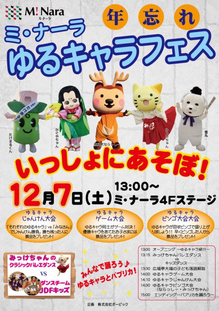 年忘れミ・ナーラ ゆるキャラフェス開催! ミ・ナーラ4階ステージ 13:00~ オープニング 13:15~ みっけちゃんバレエダンスVSキッズダンス 13:30~ 広福亭大福の子ども落語解説 14:00~ ゆるキャラゲーム大会 14:10~ ゆるキャラじゃんけん大会 14:30~ ゆるキャラビンゴ大会 15:00~ エンディング〜パプリカを踊ろう〜 https://www.mina-ra.com/event/item_eventnews.jsp?id=118&rss=1&utm_source=dlvr.it&utm_medium=twitter